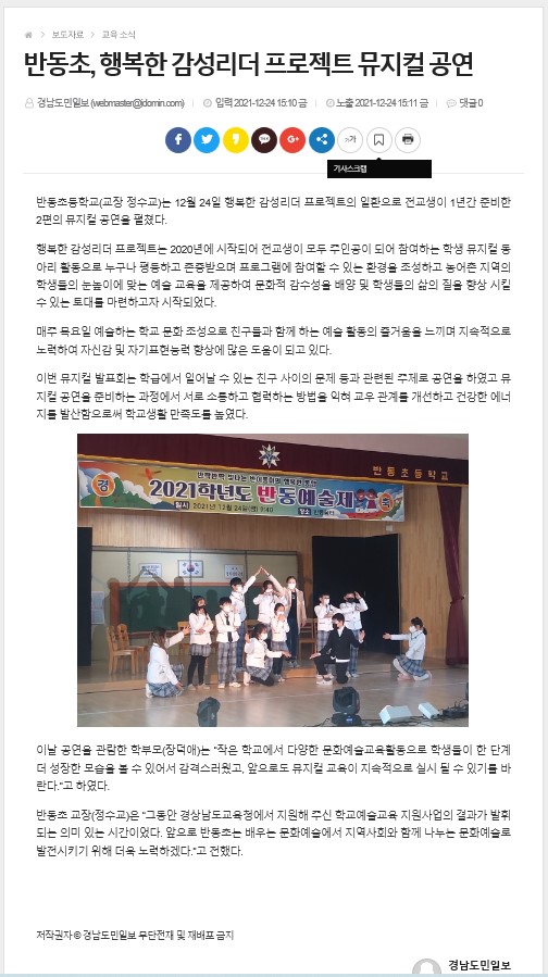 반동초, 행복한 감성리더 프로젝트 뮤지컬 공연 - 경남도민일보 (idomin.com)
