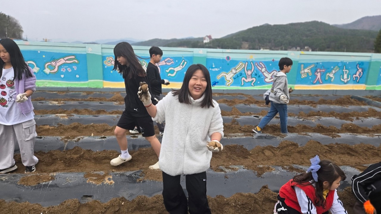 2025.3.28. 봄 텃밭작물심기로 감자 심기를 하였습니다.